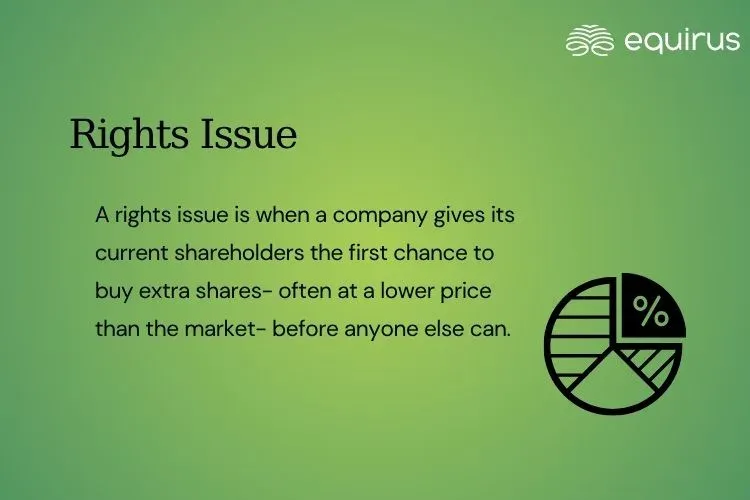 A rights issue is when a company gives its current shareholders the first chance to buy extra shares- often at a lower price than the market- before anyone else can. It’s a way for the company to raise money directly from its investors, usually based on how many shares they already own.